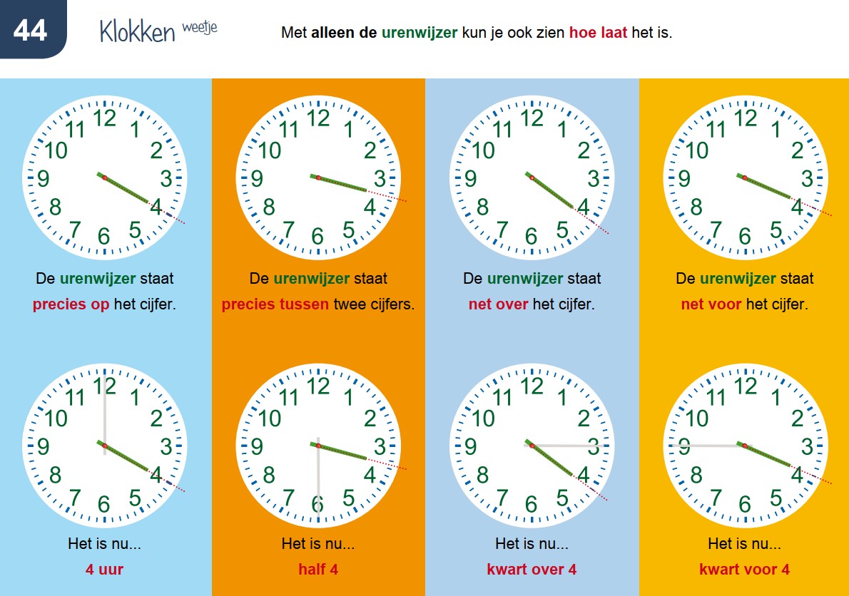 Oefen EERST met klokken met ALLEEN een uren (korte) wijzer